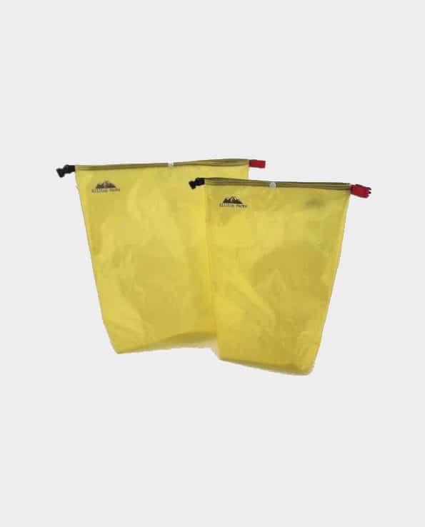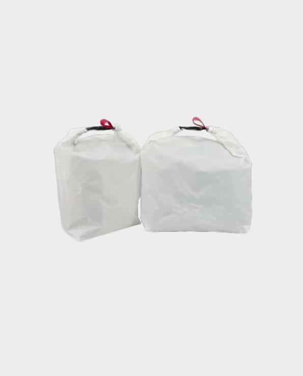 The bag is made from Challenge D50T, a technical fabric registered by Challenge Sailcloth. It’s a lightweight and durable material designed to maintain its shape and protect contents from moisture, abrasion, and regular use without adding extra weight to your backpack.