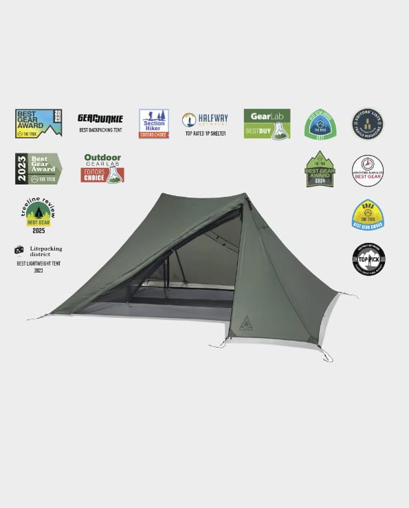 The X-Mid 1, made by Durston Gear in Canada, is a 1-person tent that has won several awards in recent years for its innovative geometric design. Weighing only 720g, it offers one of the best combinations of lightness, comfort, and protection in its category.