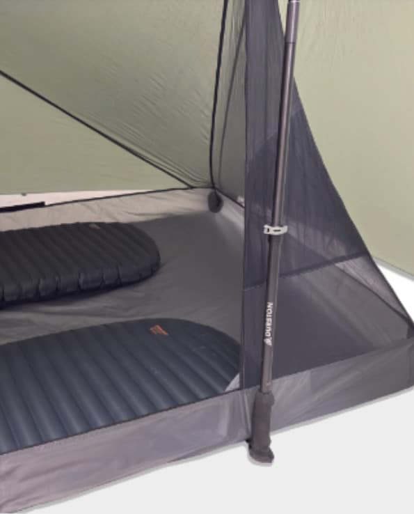 La X-Mid.2 fabricada en Canada por Durston Gear, es una tienda ultraligera de 2 plazas que ha sido varias veces galardonada por su geometría única y funcionalidad real. Su capacidad para unir volumen, protección y peso mínimo la coloca entre las opciones más equilibradas del mercado. Con solo 880gr, ofrece un espacio habitable sorprendentemente generoso para su categoría.